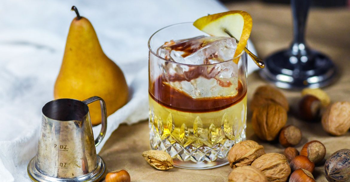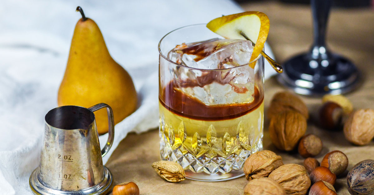 Frangelico, the hazelnut liqueur, can be overpowering in cocktails if it isn’t kept in check. Here, it plays beautifully off of pear syrup and rich, reposado tequila. The result might strike you as a little sweet at first — fortunately, aromatic bitters balance things out and add complexity.